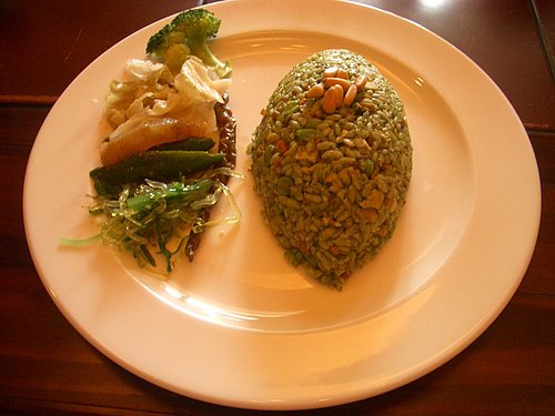 青醬炒飯,我有吃了一口炒飯,裡面都是些五穀雜糧的食材,很好吃哦!