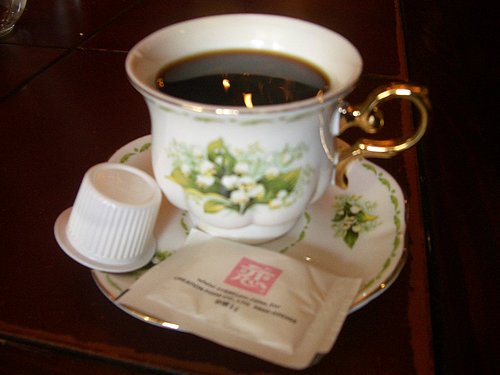 杯子很漂亮的熱咖啡,跟它店裡的裝橫蠻搭的。